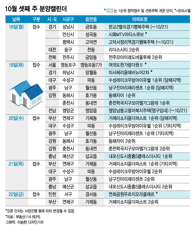 10월 셋째주 전국 13개 단지에서 6000여 가구가 분양에 나선다.