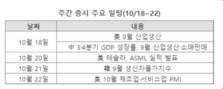 아울러 18일엔 미국 9월 산업생산 추이도 발표된다. 박 연구원은 "기저효과로 급반등했던 미국 전산업 생산 증가율이 4월을 고점으로 둔화된 이후 9월 들어 5개월 만에 반등할 전망"이라며 "향후 전년 대비 생산 증가율 추이는 변동성을 줄이는 흐름이 예상된다"고 분석했다.