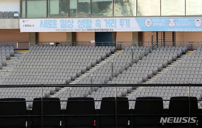 [서울=뉴시스] 백동현 기자 = 내일부터 백신 접종 완료자에 한해 경기장 입장이 가능해졌다. 지난 15일 정부가 발표한 사회적 거리두기 조정안에 따르면 백신 접종 완료자에 한해 실내 경기는 총 수용 규모의 20%, 실외 경기는 최대 30%까지 입장이 허용된다. 사진은 17일 오후 서울 마포구 서울월드컵경기장의 모습. 2021.10.17. livertrent@newsis.com