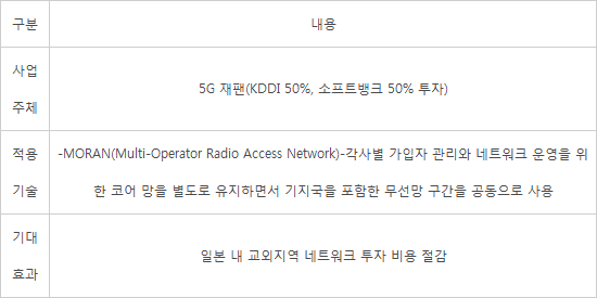 KDDI-소프트뱅크 5G망 공유 현황