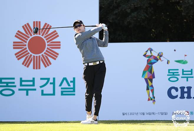 (서울=뉴스1) 유승관 기자 = 이정민이 17일 전북 익산CC에서 열린 '동부건설-한국토지신착 챔피언십' 파이널라운드 1번홀에서 티샷을 날리고 있다. (KLPGA 제공) 2021.10.17/뉴스1