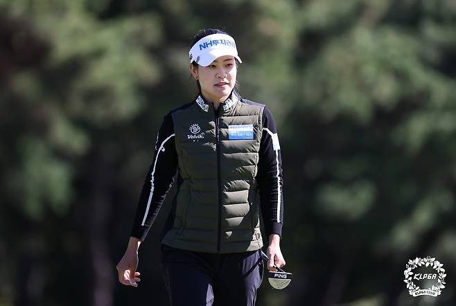 (서울=뉴스1) 유승관 기자 = 박민지가 17일 전북 익산CC에서 열린 '동부건설-한국토지신착 챔피언십' 파이널라운드 3번홀에서 파세이브 후 홀아웃하고 있다. (KLPGA 제공) 2021.10.17/뉴스1