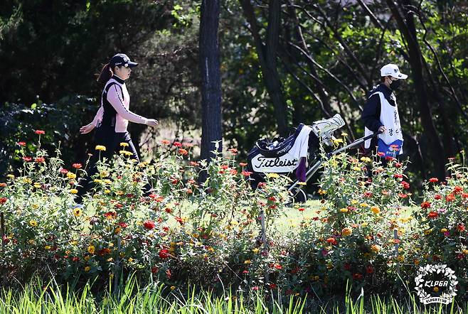 (서울=뉴스1) 유승관 기자 = 장수연이 17일 전북 익산CC에서 열린 '동부건설-한국토지신착 챔피언십' 파이널라운드 8번홀에서 그린으로 이동하고 있다. (KLPGA 제공) 2021.10.17/뉴스1