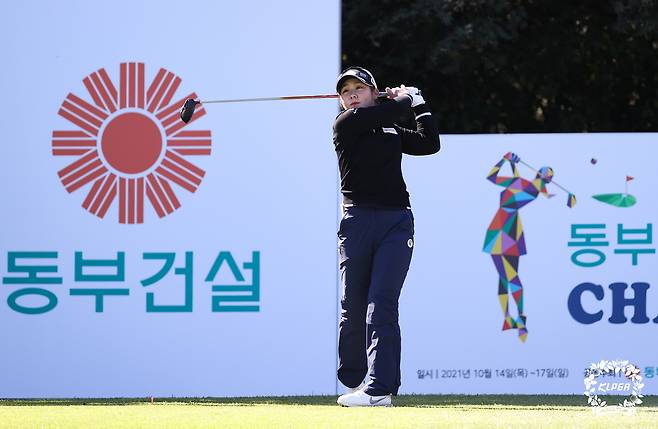 (서울=뉴스1) 유승관 기자 = 이소영이 17일 전북 익산CC에서 열린 '동부건설-한국토지신착 챔피언십' 파이널라운드 1번홀에서 티샷을 날리고 있다. (KLPGA 제공) 2021.10.17/뉴스1