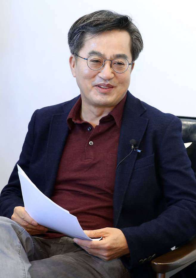 [서울=뉴시스] 최진석 기자 = 김동연 전 경제부총리가 17일 서울 성동구 서울숲 포휴에서 열린 여야 대선 후보에 대한 정책을 검증하는 선후포럼에 참석해 시작에 앞서 대화를 나누고 있다.2021.10.17. myjs@newsis.com