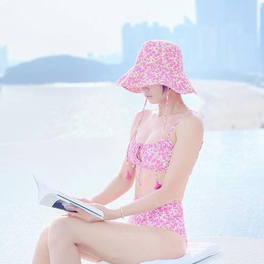 함께 공개한 사진에는 드넓은 바다가 한눈에 담기는 고층뷰를 배경으로 분홍색 꽃무늬 비키니 차림의 하연주가 독서를 하는 평화로운 모습이 담겼다.