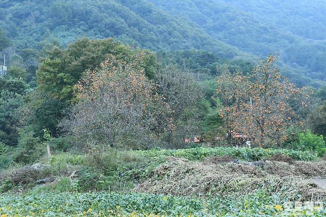 오래된 감나무들이 산골 마을 곳곳에 서 있는