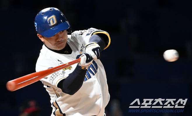 2021 KBO리그 LG 트윈스와 NC 다이노스의 더블헤더 2차전 경기가 17일 창원NC파크에서 열렸다. 2회말 NC 강진성이 안타를 치고 있다. 창원=허상욱 기자 wook@sportschosun.com/2021.10.17/