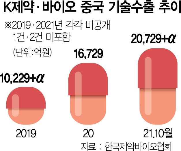 미국과 함께 글로벌 최대 의약품 시장 중 하나로 꼽히는 중국에 국내 제약·바이오 기업의 기술수출이 급증하고 있다. 올 들어 현재까지 대(對)중국 계약 규모가 2조 원을 돌파해 사상 최대 성과를 냈다. 바이오산업을 전략적으로 육성하고 있는 중국이 코로나19 팬데믹(세계적 대유행) 상황에서 글로벌 백신 허브로 떠오를 정도로 기술력을 인정받는 K제약·바이오 업계에 잇달아 ‘러브콜’을 보내고 있는 데 따른 것이다.
