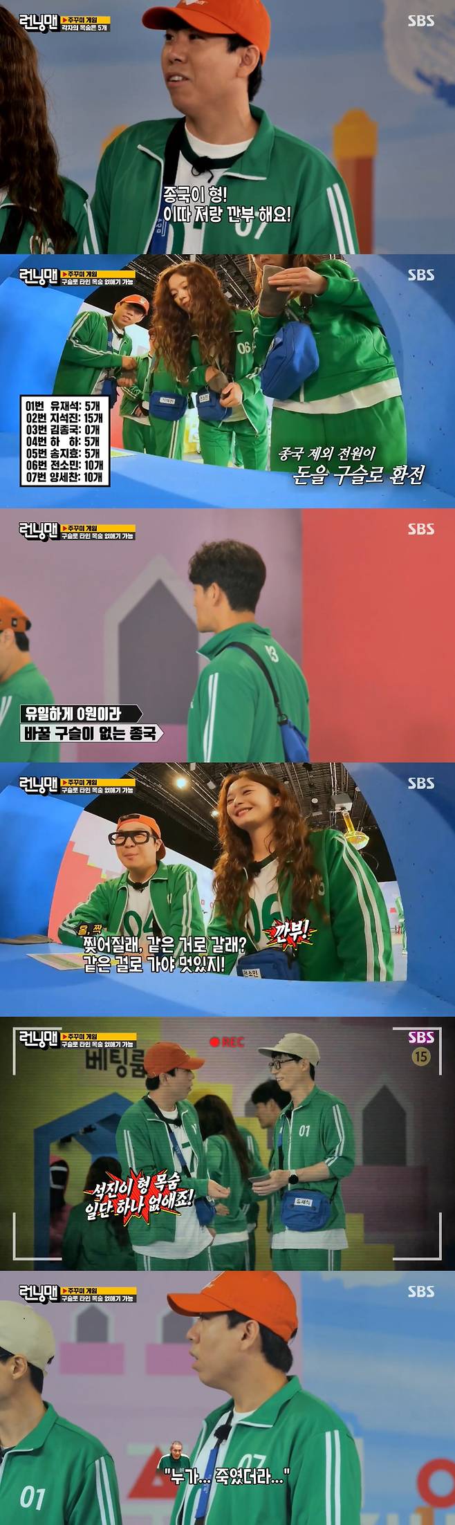 하하와 전소민은 환전한 구슬을 불리러 베팅룸에 입장, 그때 지석에게 구슬을 뺏긴 유재석과 양세찬은 깐부를 맺고 지석진의 목숨 하나를 없앴다.