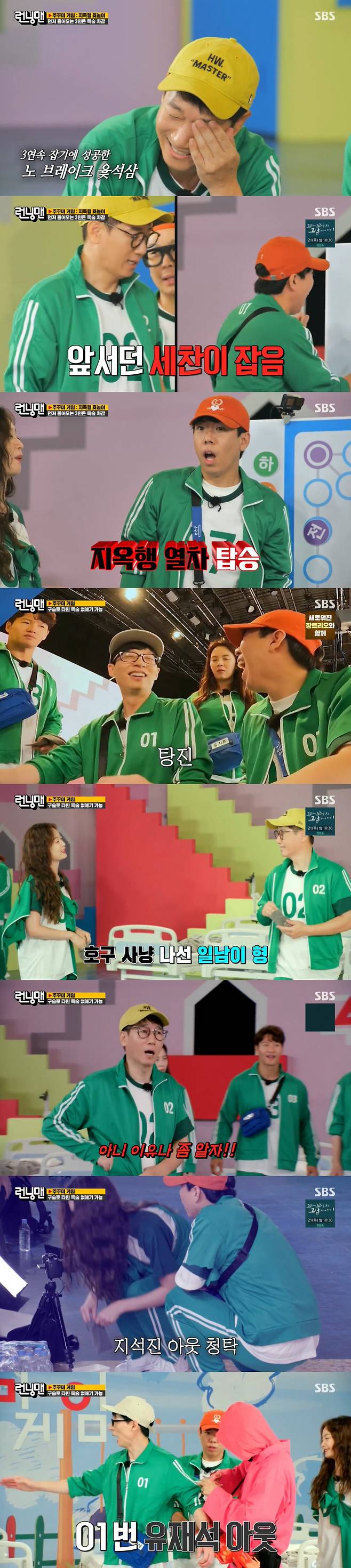 첫 번째 게임은 지옥행 윳놀이로, 먼저 골인하면 목숨을 잃는 게임이다. 지석진이 압도적인 독주를 한 가운데 잡고 잡히는 끝에 양세찬이 두각을 나타내기 시작했다. 그때 지석진은 앞서던 양세찬을 잡고 이어 윷까지 브레이크 없는 독주에 다른 참가자들은 춤을 추는 등 극강의 텐션으로 웃음을 안겼다.