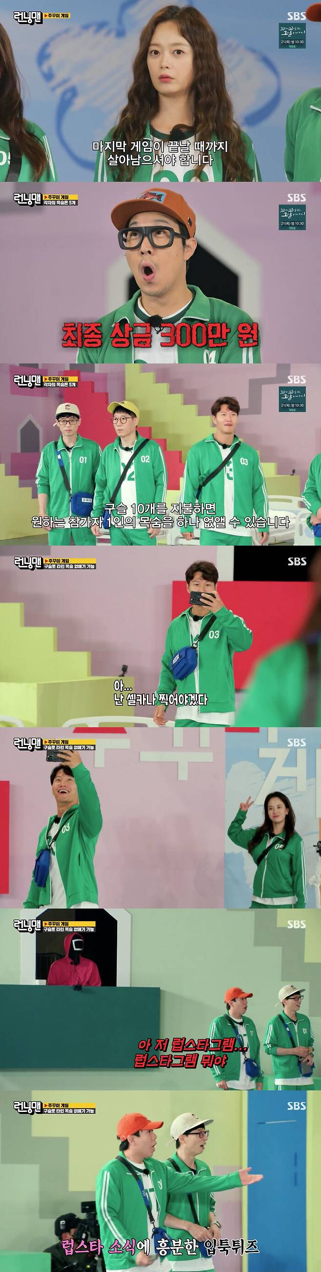 이에 김종국은 "뭐라는 거냐. 난 그냥 셀카를 찍은 거다"라고 했고, 입툭튀즈는 송지효와 같이 나왔다며 흥분을 멈추지 못해 웃음을 자아냈다.