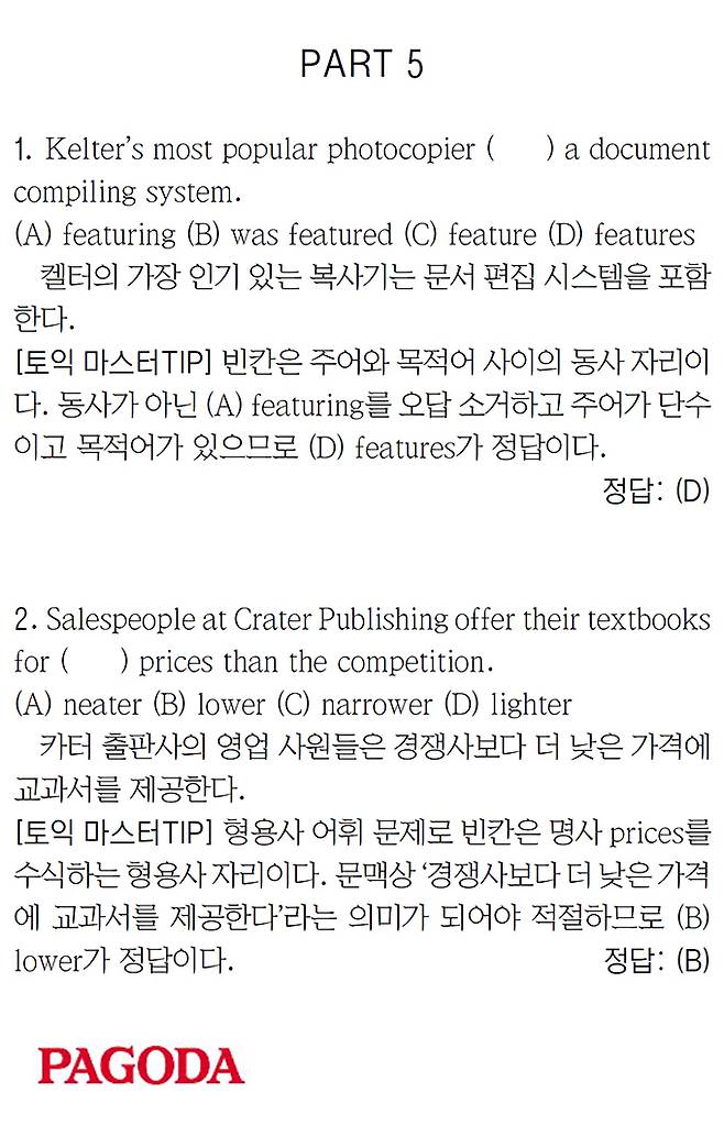 [파고다 강남 스타토익 RC유나신] PART 5