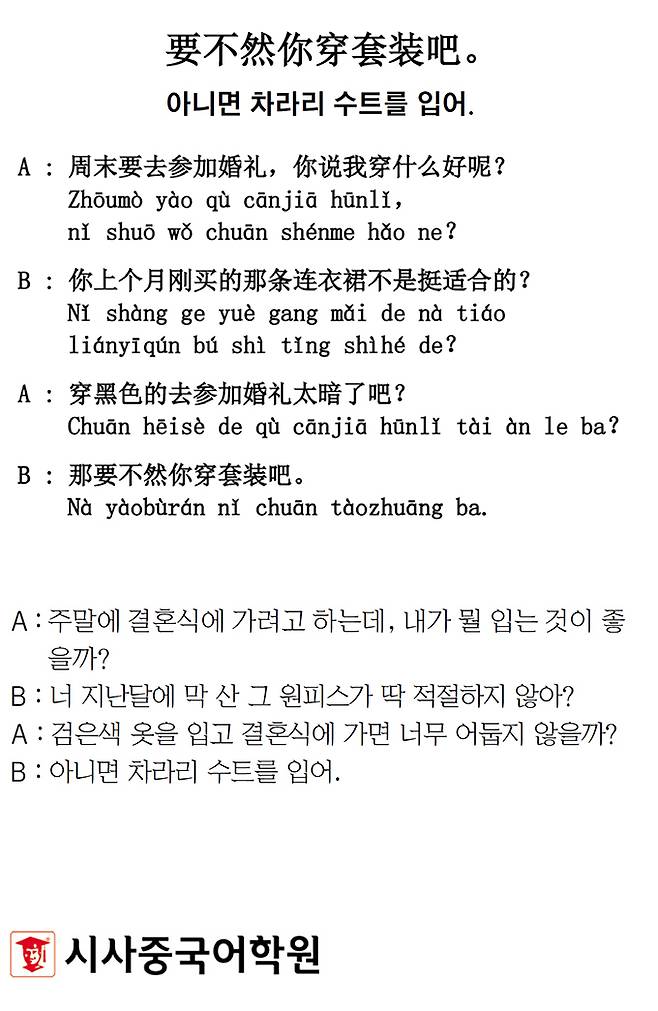 [시사중국어학원의 리얼 중국어 회화] 아니면 차라리 수트를 입어.