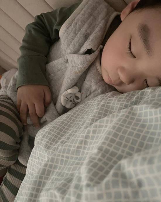 사진 속에는 침대 한 구석에 조용히 누워 잠들어 있는 서수연과 이필모의 아들 담호 군의 모습이 담겨 있다.