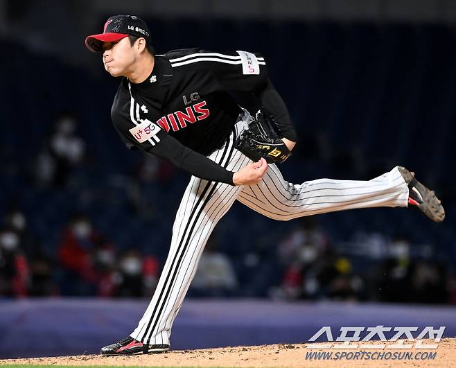 2021 KBO리그 LG 트윈스와 NC 다이노스의 더블헤더 2차전 경기가 17일 창원NC파크에서 열렸다. 4회말 LG 백승현이 힘차게 공을 던지고 있다. 창원=허상욱 기자 wook@sportschosun.com/2021.10.17/