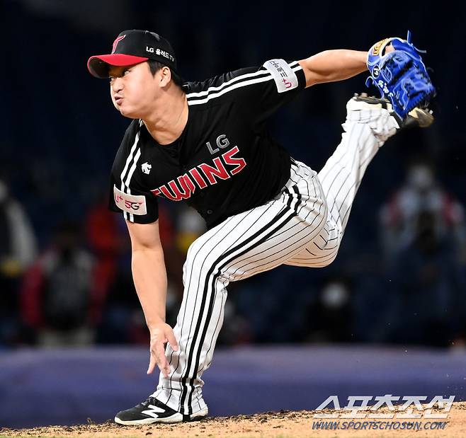 2021 KBO리그 LG 트윈스와 NC 다이노스의 더블헤더 2차전 경기가 17일 창원NC파크에서 열렸다. 9회말 LG 고우석이 역투하고 있다. 창원=허상욱 기자 wook@sportschosun.com/2021.10.17/