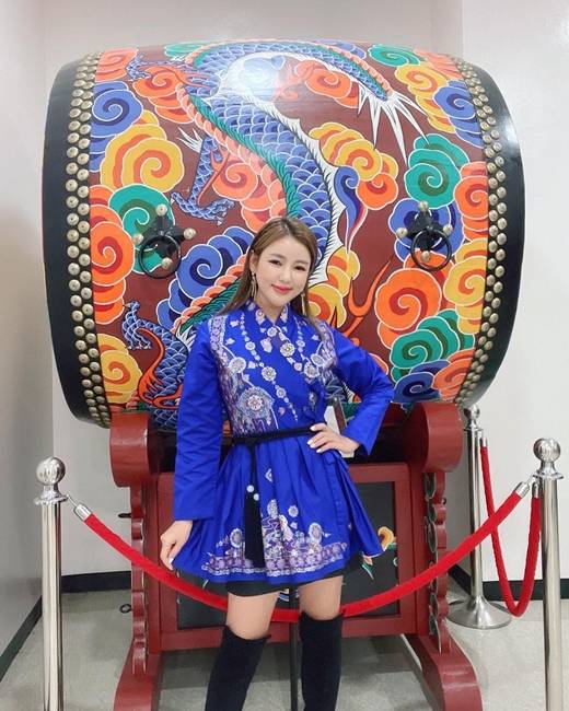공개된 사진에는 파란색 퓨전 한복을 입은 송가인의 모습이 담겼다. 송가인의 뒤편 자리한 커다란 북이 눈길을 끈다. 그러나 가장 시선을 사로잡는 것은 화려한 전통 문양과 우아하게 어울리는 송가인의 미모. 반짝이는 물광 피부, 오뚝한 콧대, 발그레한 두 볼이 사랑스럽다.