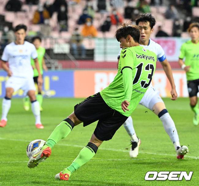 후반 전북 김보경이 슛을 시도하고 있다. 2021.10.17 /sunday@osen.co.kr