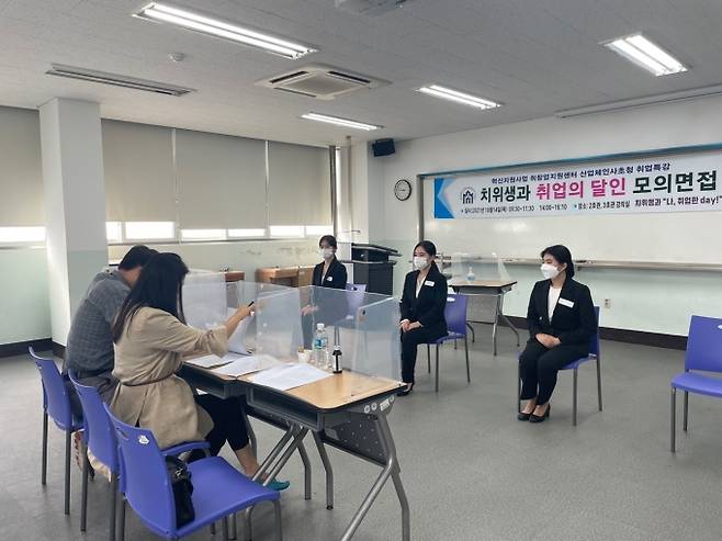 마산대학교 치위생과(학과장 구효진)는 지난 14일 3학년 재학생 172명을 대상으로 ‘취업의 달인-모의면접’과 ‘취업멘토링-치위생과 톡톡, 멘토와 함께 Talk Talk’ 행사를 개최했다.