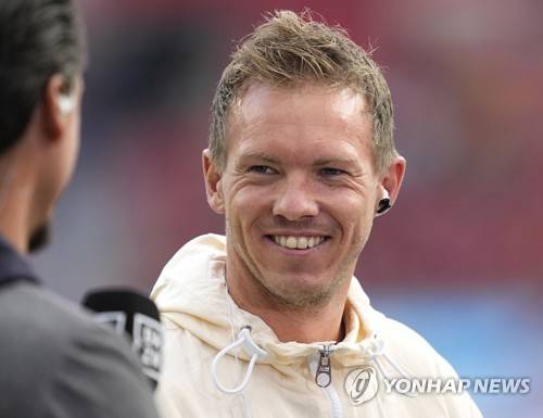 Bayern's head coach Julian Nagelsmann smiles ahead the German Bundesliga soccer match between Bayer Leverkusen and Bayern Munich in Leverkusen, Germany, Sunday, Oct. 17, 2021. (AP Photo/Martin Meissner) The deutsche fussball liga dfl does not allow the images to be used as sequences to emulate video.