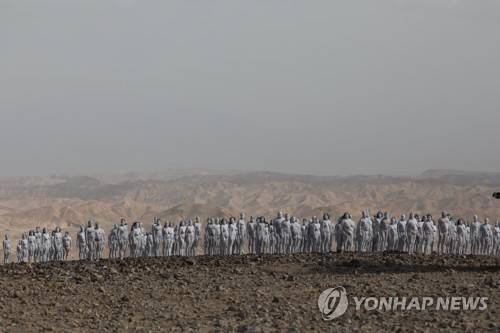 epa09528537 Nude participants take part in a photo installation of US artist Spencer Tunick (unseen) overlooking the Dead Sea near the southern city of Arad, Israel, 17 October 2021. Some 300 participants took part in the nude photo installation aimed to raise awareness to the importance of preserving and restoring the Dead Sea. EPA/ABIR SULTAN EDITORIAL USE ONLY