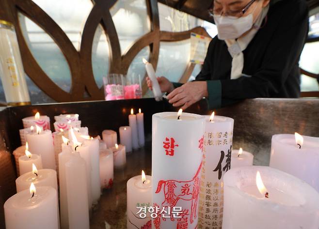 2022학년도 대학수학능력시험을 한 달여 앞둔 17일 서울 조계사 앞마당에 합격을 기원하는 촛불들이 밝혀져 있다.