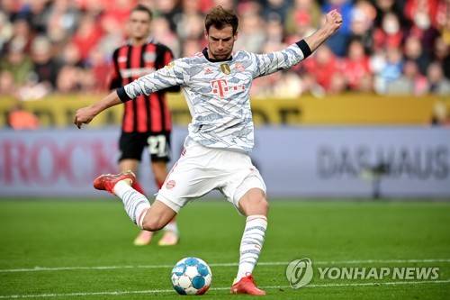 epa09528591 Bayern's Leon Goretzka in action during the German Bundesliga soccer match between Bayer Leverkusen and FC Bayern Muenchen at BayArena in Leverkusen, Germany, 17 October 2021. EPA/SASCHA STEINBACH CONDITIONS - ATTENTION: The DFL regulations prohibit any use of photographs as image sequences and/or quasi-video.