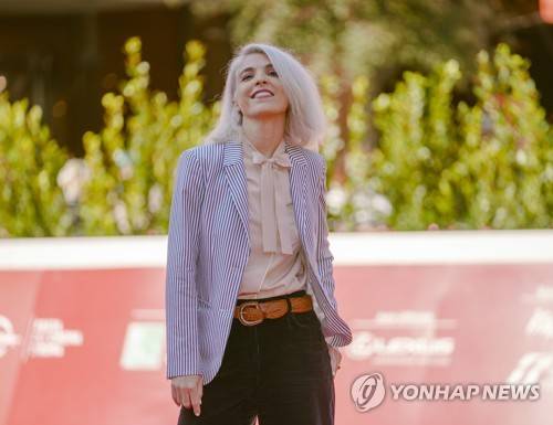 Director Eva Husson poses during a photo call for the movie 'Motherin Sunday' on the red carpet at the 16th edition of the Rome Film Fest in Rome, Sunday, Oct. 17, 2021. (AP Photo/Domenico Stinellis)