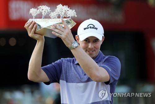 epa09528858 English golfer Matt Fitzpatrick holds his trophy after winning the Estrella Damm N.A. Andalucia Masters golf tournament at Valderrama golf course, in Cadiz, southern Spain, 17 October 2021. EPA/A. Carrasco Ragel