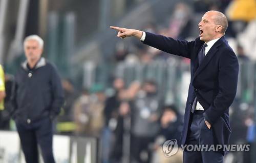 epa09529264 Juventus? coach Massimiliano Allegri reacts during the Italian Serie A soccer match Juventus FC vs AS Roma at Allianz Stadium in Turin, Italy, 17 october 2021. EPA/ALESSANDRO DI MARCO