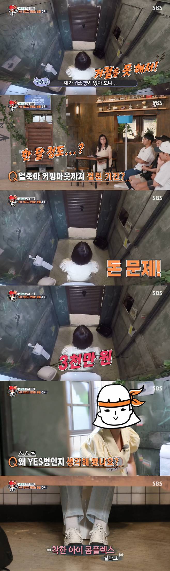 오나미는 "왜 YES병인지 생각해 봤느냐"는 질문에 "주변에서 착한 콤플렉스가 있는 것 같다고 하더라"고 털어놨다.
