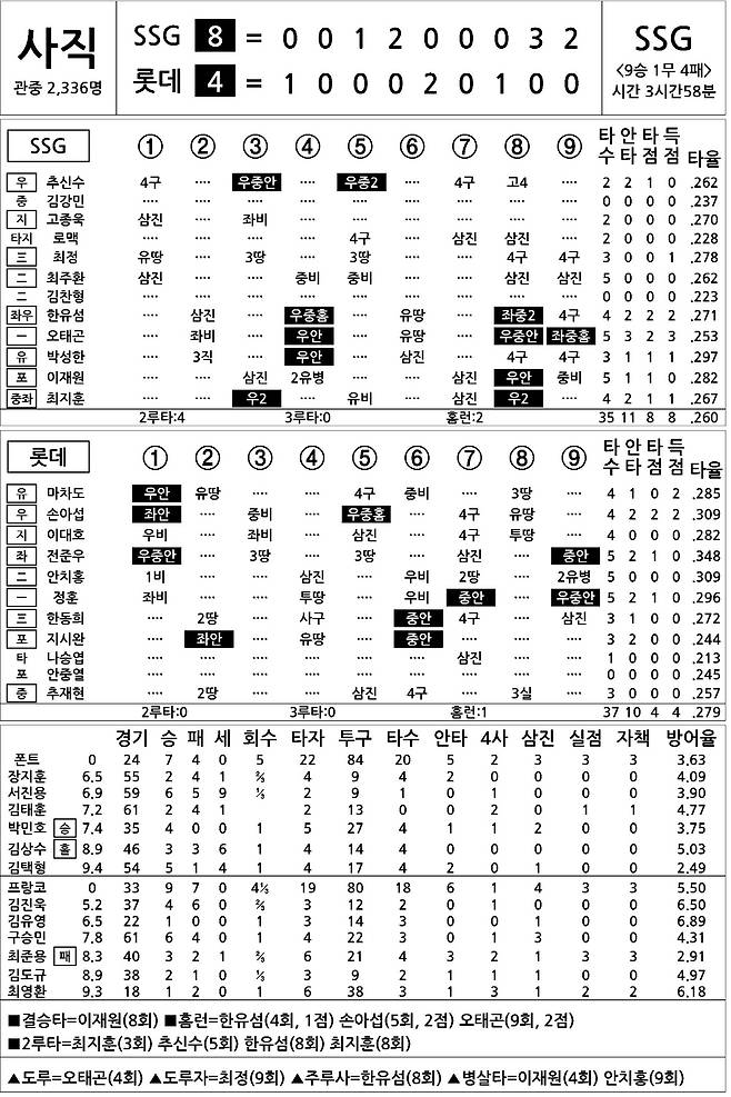 [2021 KBO리그 기록실] SSG vs 롯데 (10월 16일)