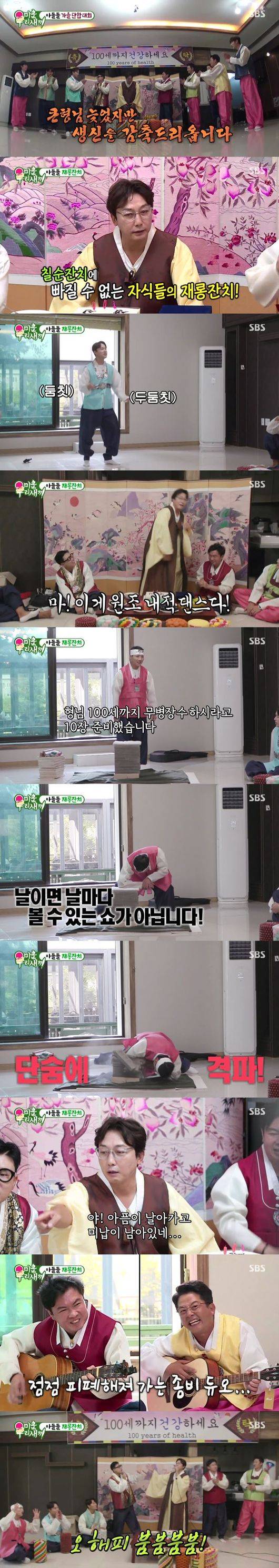 이 외에도 김준호와 임원희는 좀비 듀오로 탁재훈을 즐겁게 했고, 보답으로 탁재훈과 이상민이 ‘오, 해피’를 열창하자 동생들은 탁재훈의 무병 장수를 기원하며 큰 절로 생일을 마무리했다.
