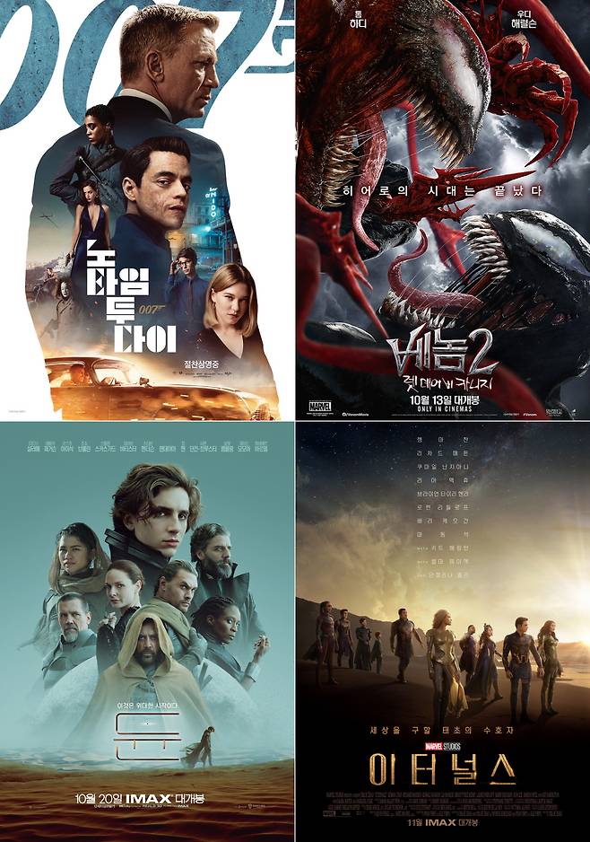 여기에 완화된 거리두기와 '위드 코로나' 최대 수혜를 볼 것으로 예상되는 '이터널스'(클로이 자오 감독)도 오는 11월 3일 개봉일을 확정, 극장가 흥행 분위기를 최대치로 끌어올린 예정이다.