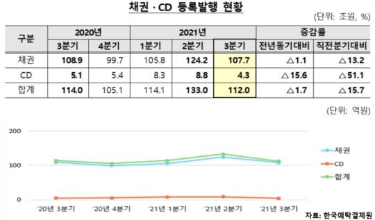 21년 3분기 채권·CD 전자등록발행 규모 112조원