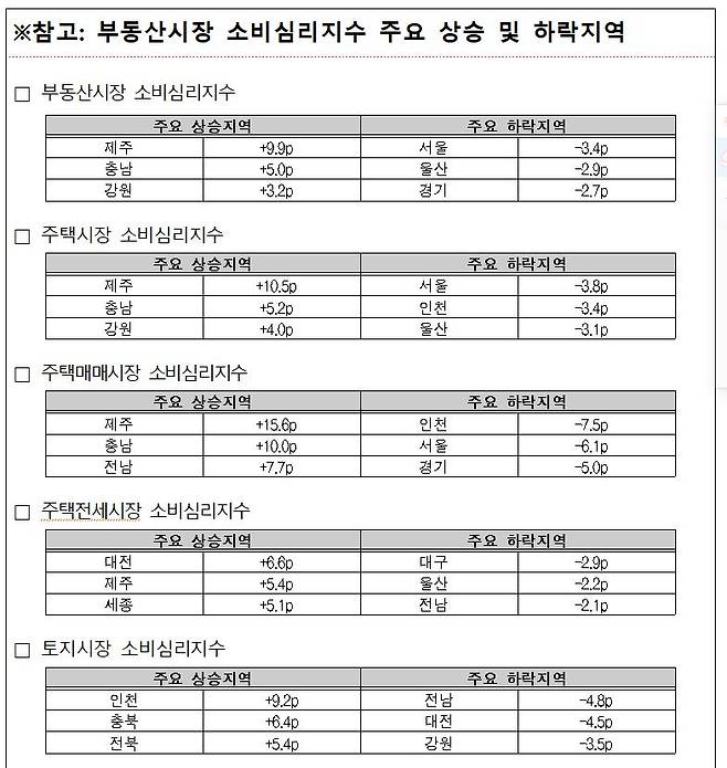 전국 기준으로는 139.3을 기록, 역시 전월 141.4 대비 하락했다. 전국 기준으로 지수가 꺾인 것은 5개월여 만이다.