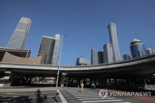 epa09529479 People walks in the central business district (CBD) in Beijing, China, 17 October 2021 (issued 18 October 2021). China's gross domestic product (GDP) rose 4.9 percent year on year in the third quarter of 2021, according to data from the National Bureau of Statistics (NBS) issued on 18 October 2021. EPA/WU HONG