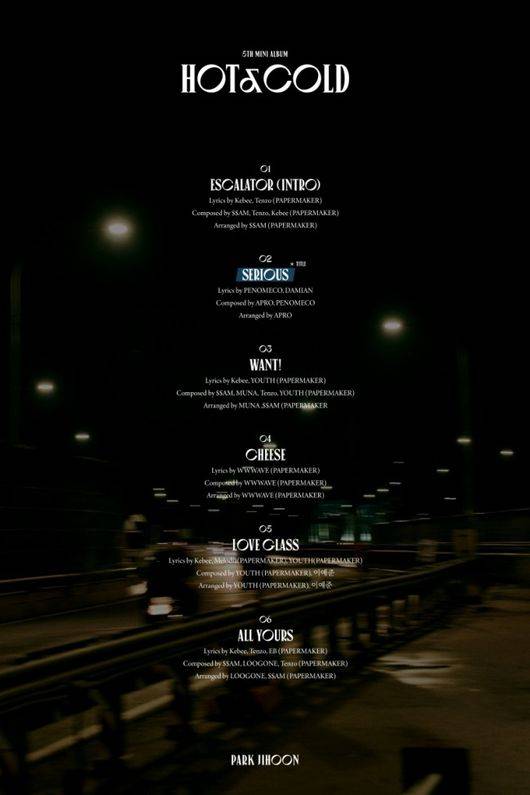 박지훈은 18일 0시 공식 SNS를 통해 다섯 번째 미니앨범 'HOT&COLD(핫 앤 콜드)'의 트랙리스트 이미지를 게재했다.
