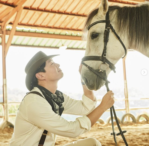 연정훈은 패배의 아쉬움을 비하인드컷으로 달랬다. 사진에서 그는 백마와 눈을 맞추며 교감해 감동을 안긴다. 조선희 작가와 함께 찍은 단체샷에서는 ‘1박 2일’ 멤버들 모두 웃음꽃을 피우고 있다.