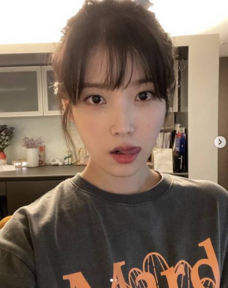 소탈한 티셔츠에 머리를 올려 묶은 아이유는 입술 밖으로 혀를 빼꼼 내밀며 큐티 섹시미를 발산했다.