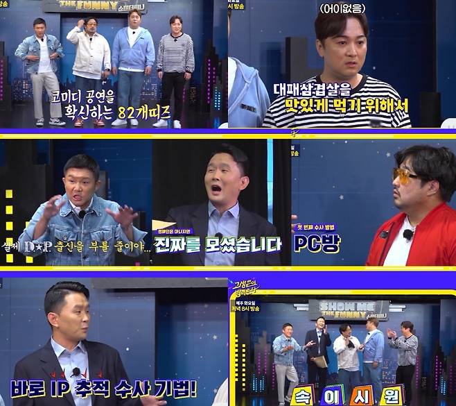 '현실판 정해인'으로 드라마 'D.P.'의 히트 뒤 화제의 인물이 된 윤형빈을 황제성은 "D.P.로 요즘 아주 좋으십니다..."라고 환영했다. 강재준 역시 "이 형은 D.P.로 요즘 아주 뽕을 뽑으려고 그래. 심지어 전국 검거율 1등이었대"라며 반가워했고, 그러자 윤형빈은 "전국 1등은 좀 없어보이고…육해공군을 통틀어서 '전군 1등'입니다"라고 실제 D.P.의 포스를 뽐냈다. 하지만 그는 "오늘 내가 정해인 씨 역할인 줄 알았는데, 김성균 씨 옷을 입히더라고..."라며 살짝 아쉬워하기도 해 폭소를 자아냈다.