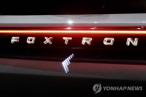 epa09529584 The logo of Foxconn Technology Group's (Hon Hai Precision Industry Co. Ltd.) car brand FOXTRON is on display at the launch of their electric vehicle lineup during the Hon Hai (Foxconn) Tech Day in Taipei, Taiwan, 18 October 2021. Foxconn launched their E-Vehicle lineup with the brand name FOXTRON that comes with the Model C, Model E and Model T. EPA/RITCHIE B. TONGO