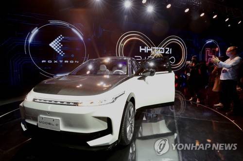 epa09529588 People view the FOXTRON Model C during the launch of the company's electric vehicle lineup during the Hon Hai (Foxconn) Tech Day in Taipei, Taiwan, 18 October 2021. Foxconn launched their E-Vehicle lineup with the brand name FOXTRON that comes with the Model C, Model E and Model T. EPA/RITCHIE B. TONGO