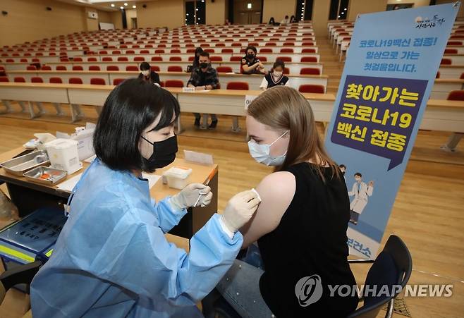 '찾아가는 백신 접종' 화이자 맞는 외국인 유학생
