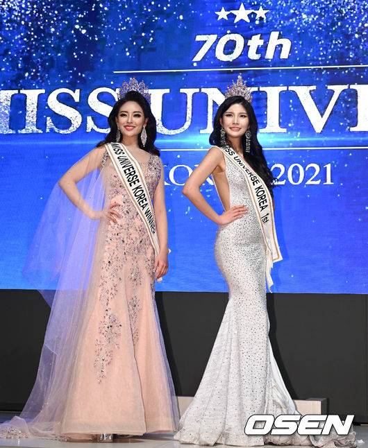 미스 유니버스 코리아 대상 김지수, 1등 김민경이 포즈를 취하고 있다. 2021.10.18 /cej@osen.co.kr