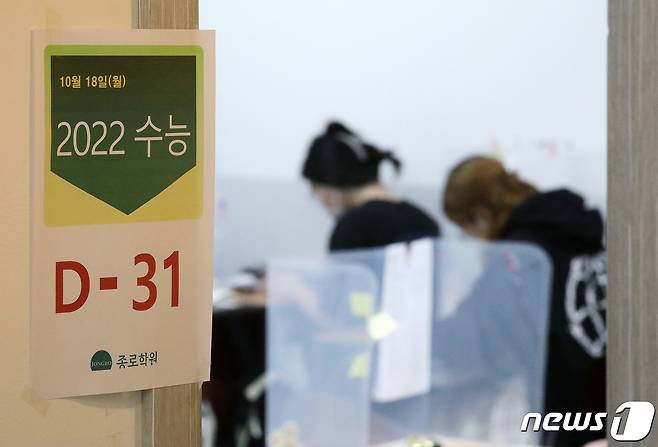 (서울=뉴스1) 박세연 기자 = 2022학년도 대학수학능력시험(수능)을 31일 앞둔 18일 오후 서울 마포구 종로학원 강북본원에서 수험생들이 공부를 하고 있다. 2021.10.18/뉴스1