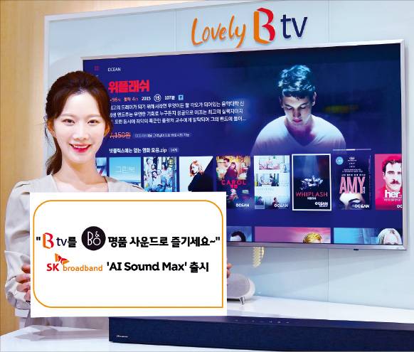주요 유료방송 기업은 세계적으로 유명한 음향기업들과 셋톱박스 협업에 나섰다. 비싼 음향 장비 없이도 셋톱박스만으로 시청 몰입감을 높이려는 시도다. 지난 13일 SK브로드밴드가 글로벌 오디오 전문브랜드 뱅앤올룹슨과 함께 사운드바 일체형 AI 셋톱박스 ‘AI 사운드 맥스’를 출시했다. 가로 78㎜, 폭 97㎜, 높이 64㎜의 막대 모양에 40W(와트) 우퍼 스피커 두 개, 15W 풀레인지 스피커 두 개를 장착한 셋톱박스다. 뱅앤올룹슨의 음향 전문가가 스피커 설계와 튜닝을 하고 검증까지 했다. SK브로드밴드의 IPTV 서비스 Btv에 특화한 음향도 제공한다. 콘텐츠의 메타정보를 기반으로 음장모드가 알아서 변한다. 뉴스를 방송할 때는 아나운서 목소리를 더욱 또렷하게 처리하고, 영화를 볼 때는 저·중·고음별 음향 균형을 고루 잡아주는 식이다.