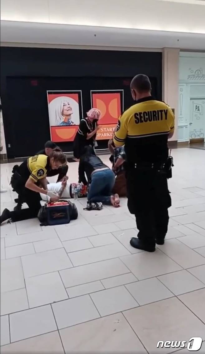 (랭캐스터 로이터=뉴스1) 신윤하 기자 = 17일(현지시간) 미국 펜실베이니아주 랭캐스터의 한 쇼핑몰에서 시민이 총을 맞고 쓰러졌다. 사진은 스코트 모슬러(Scott Mossler)의 소셜 미디어에 올라온 영상 캡처.