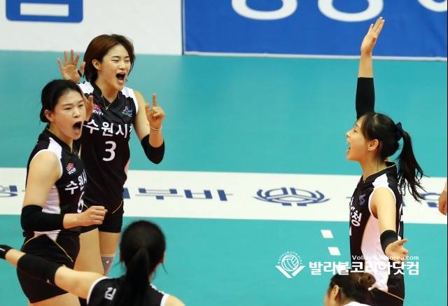 - [실업배구 종별선수권] 공격성공, 기뻐하는 수원시청 선수들. - 발리볼코리아
